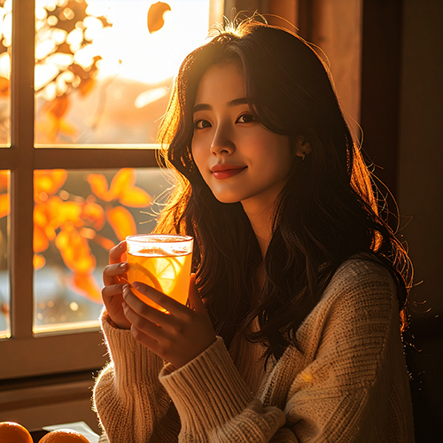 유자는 레몬보다 풍부한 비타민C로 겨울철 건조한 실내 환경에 딱 맞습니다. 목이 칼칼할 때도 편안합니다.