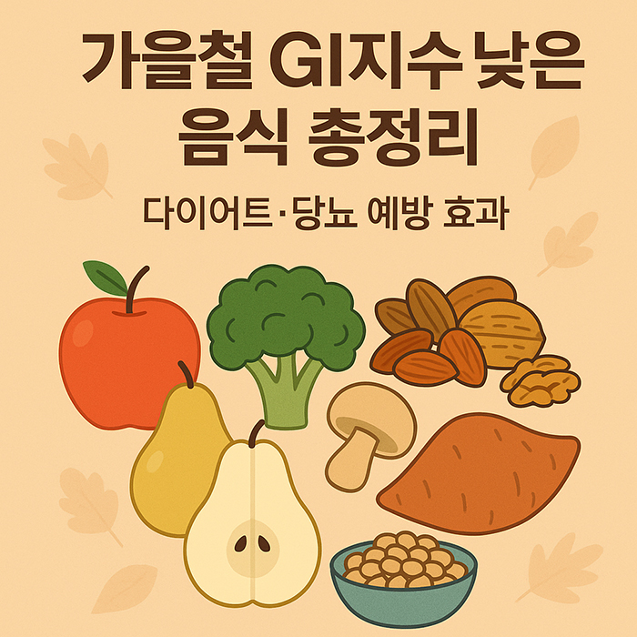 고구마·사과·배·견과류·버섯·녹색 채소·콩류 같은 저GI 제철 식품을 중심으로 식단을 짜면, 가을철에도 혈당 안정과 체중 관리를 동시에 노릴 수 있습니다. 조리법과 분량을 현명하게 조절하며, 일상 활동·운동과 병행해 건강한 시즌을 완성하세요.
