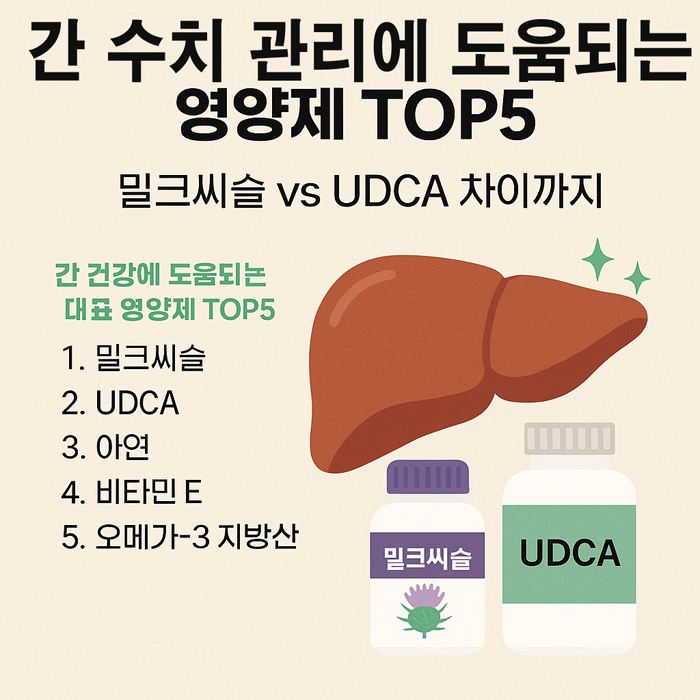 간은 조용하지만 매우 중요한 장기입니다. 증상이 없다고 방치하기보다는, 수치 이상이 보이면 조기에 관리하는 것이 가장 현명한 방법입니다. 밀크씨슬, UDCA, 아연, 비타민 E, 오메가-3 등 다양한 영양제를 상황에 맞게 선택해 간 건강을 챙겨보세요.