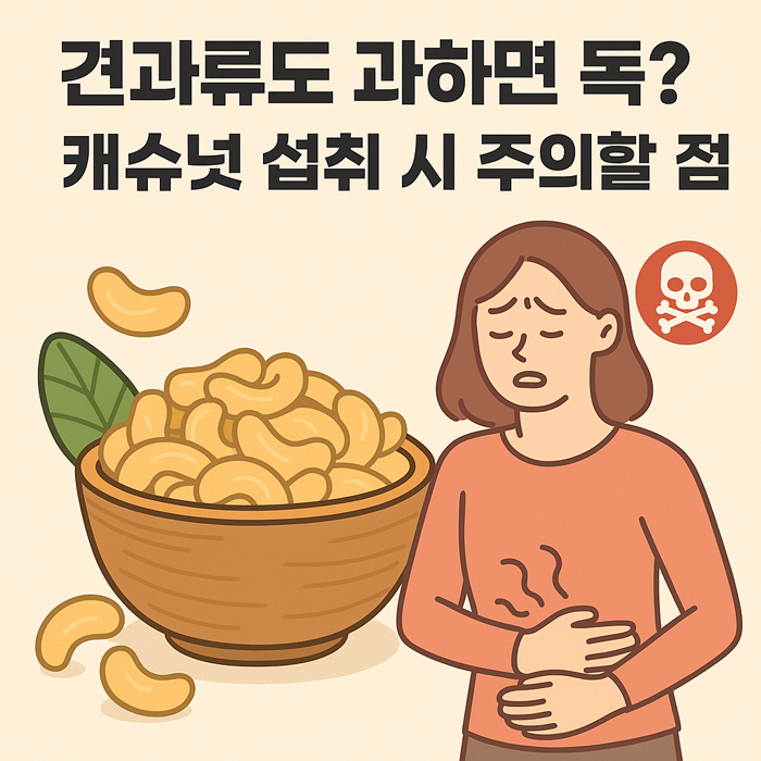캐슈넛은 영양이 풍부한 건강 간식이지만, 과다 섭취나 잘못된 섭취 방식은 건강을 해칠 수 있습니다. 무조건 좋은 음식은 없습니다. 중요한 것은 적절한 양, 올바른 방식, 개인 체질 고려입니다.