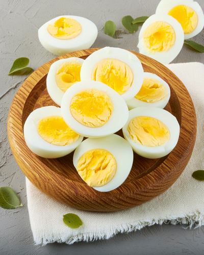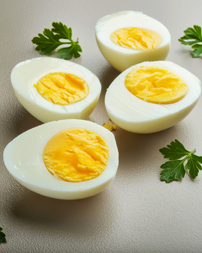 완숙 계란은 노른자와 흰자가 완전히 들어있어 매운 계란, 계란 샐러드 또는 단백질이 풍부한 스낵으로 적합합니다.