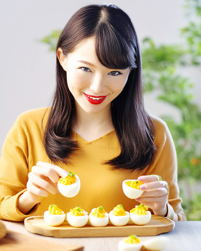 1. 삶은 계란을 세로로 반으로 자르고 노른자를 제거합니다.