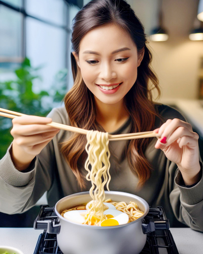 4. 그릇에 라면을 담고 반숙 계란과 원하는 토핑을 올려주세요.