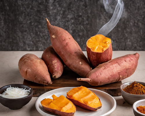 ▸ 고구마는 다양한 비타민, 미네랄 및 항산화제를 제공하는 인상적인 영양 프로필을 가지고 있습니다.