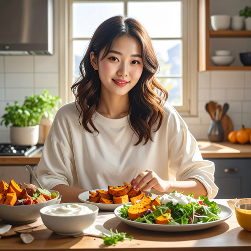 - 아침 식사 대용: 구운 고구마 + 그릭요거트(단백질/지방과 함께 먹어 혈당 안정)