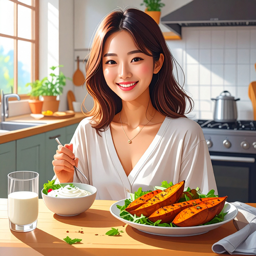 - 아침 식사 대용: 구운 고구마 + 그릭요거트(단백질/지방과 함께 먹어 혈당 안정)