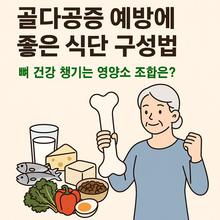 골다공증은 뼈의 밀도가 낮아져 쉽게 부러지는 질환으로, 특히 50대 이상 중장년층과 폐경 이후 여성에게 흔하게 나타납니다. 그러나 단순히 칼슘만 챙긴다고 해서 해결되는 것이 아닙니다. 다양한 영양소의 균형 있는 섭취가 중요하며, 식단 전반을 골다공증 예방에 적합하게 구성하는 것이 핵심입니다.
