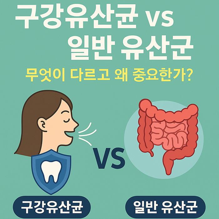 정리하면, 일반 유산균은 장 건강용, 구강유산균은 입안 건강용입니다.