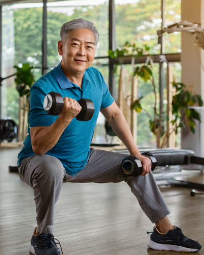 규칙적인 운동: 유산소 운동과 저항 운동을 모두 병행하면 근육량, 근력 및 기능을 유지하는 데 도움이 됩니다. 근력 운동은 근육감소증 퇴치에 특히 효과적입니다. 근력 운동으로는 스쾃, 런지, 데드리프트, 벤치프레스 등의 운동이 있습니다