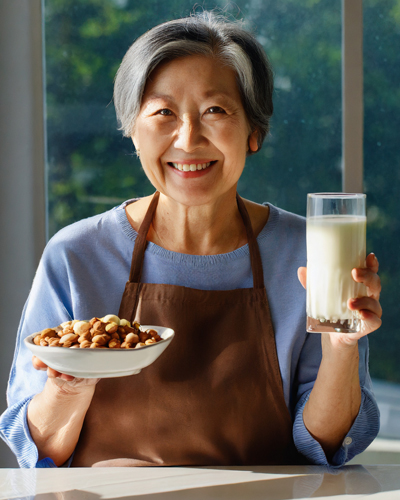 적절한 영양: 단백질과 필수 영양소가 풍부한 균형 잡힌 식단을 섭취하면 근육 건강에 도움이 됩니다. 단백질 섭취는 근육 합성과 회복에 매우 중요합니다. 근육감소증 예방을 위해 단백질이 풍부한 고기, 생선, 콩, 견과류, 우유 등을 섭취하는 것이 좋습니다.