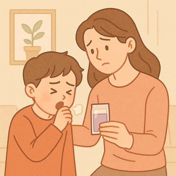 ① 기관지 점막 보호: 뮤실리지 성분이 점막을 부드럽게 코팅해 외부 자극으로부터 보호합니다.