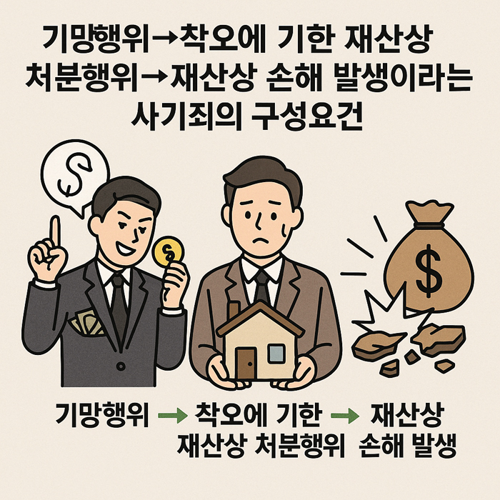 기망행위→착오에 기한 재산상 처분행위→재산상 손해 발생이라는 사기죄의 구성요건