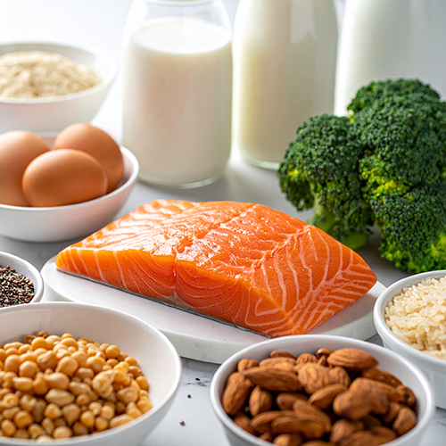 뼈·근육·연골·호르몬의 기본 재료입니다. 매 끼니 분산 섭취가 핵심입니다. (한 번에 몰아 먹기보다 조금씩 자주)
