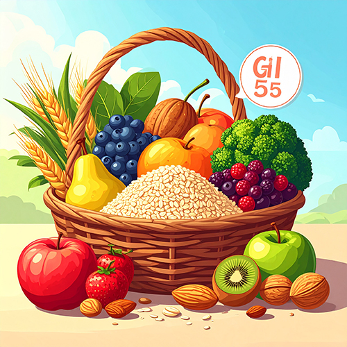 - 저GI(≤55): 혈당을 천천히 올리는 식품