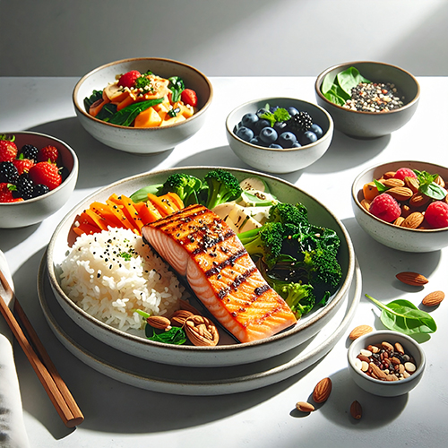 - 접시 구성: 접시 절반은 채소, 나머지 절반은 단백질+복합탄수화물