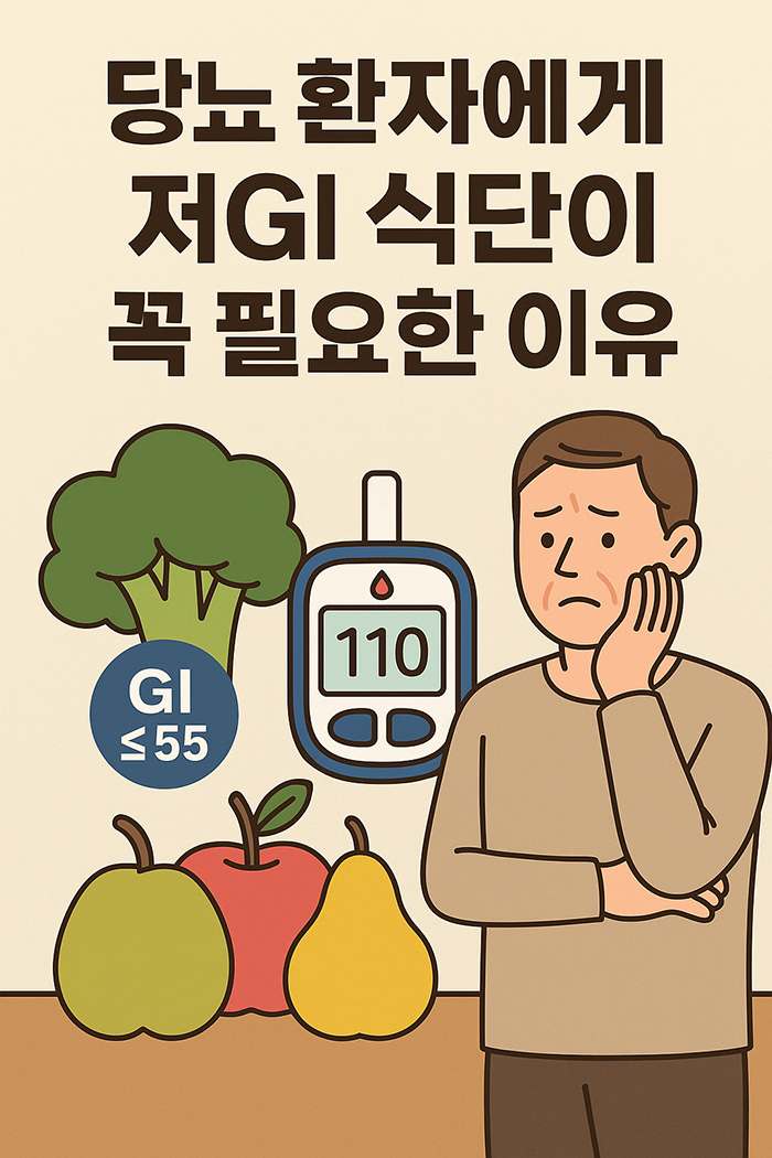 요약: 저GI(Glycemic Index, 당지수) 식단은 혈당 급상승을 억제하고, 인슐린 저항성 개선, 체중 관리, 합병증 예방에 도움을 줍니다. 당뇨 환자라면 GI 지수와 함께 섭취량(GL, Glycemic Load)을 고려해 일상 식단을 구성하는 것이 핵심입니다.