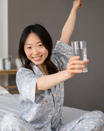수분 공급으로 하루를 시작하세요: 밤에 숙면을 취한 후 몸에 수분을 공급하여 아침을 시작하세요. 침대 옆에 물 한 잔을 두고 아침에 가장 먼저 손이 닿는 물로 시작하세요. 신선한 레몬을 짜 넣으면 맛이 좋아질 뿐만 아니라 비타민C도 풍부해집니다.
