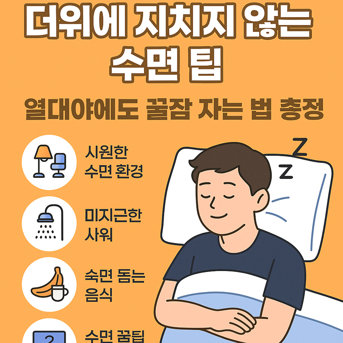 작은 변화 하나가 큰 수면의 질 차이를 만들어냅니다. 더위에 지치지 않고 상쾌한 아침을 맞이할 수 있도록, 오늘부터 실천해보세요!