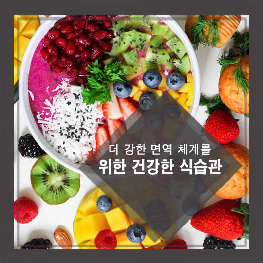 과일과 채소는 우리의 면역 체계를 증진시키는 데 도움을 주는 필수 비타민, 미네랄, 그리고 산화 방지제가 풍부합니다. 여러분의 몸이 필요로 하는 모든 영양소를 섭취하고 있다는 것을 확실히 하기 위해 다양한 색깔의 과일과 야채를 매일 먹는 것을 목표로 하세요.