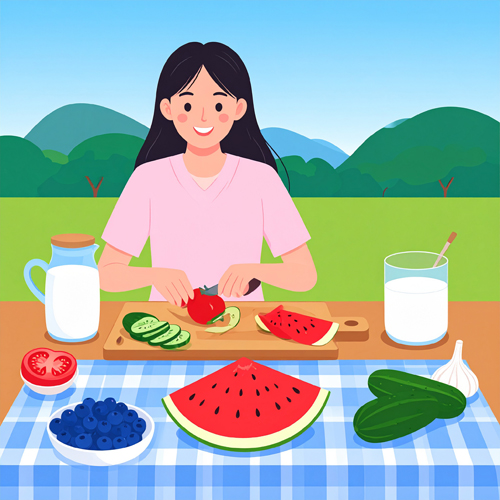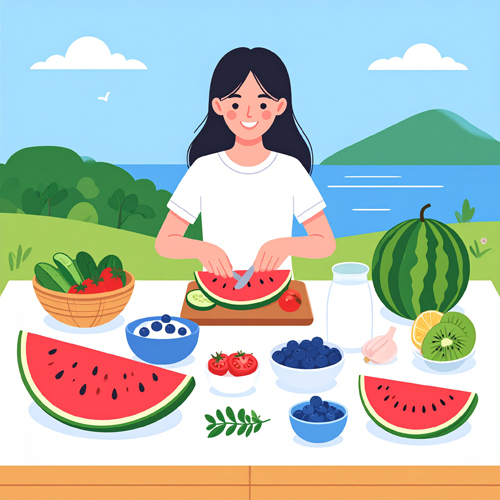 - 수박, 오이, 마늘, 된장국 등 제철 식품 활용