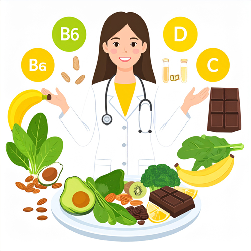 - 비타민 B6: 마그네슘이 세포 내 효소 반응에 잘 결합하도록 도와줌