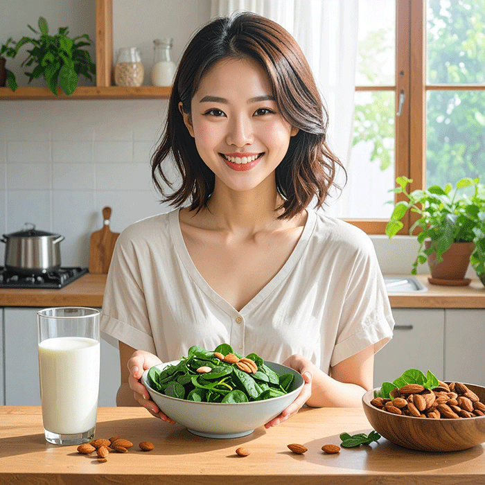 - 칼슘은 유제품·멸치·두부, 비타민 D는 계란·연어, 아연은 굴·붉은살코기·통곡물