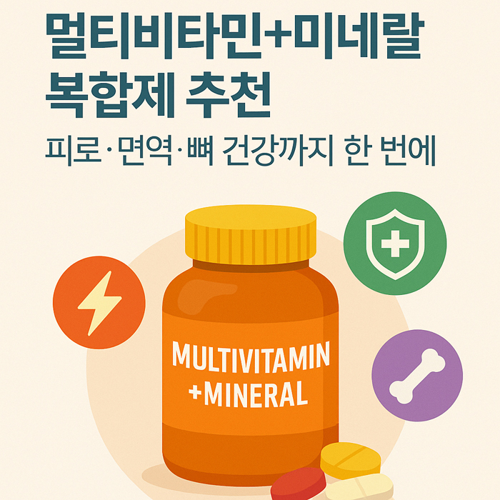 하루 한 알로 피로, 면역, 뼈 건강까지! 멀티비타민+미네랄 복합제는 단순한 보충제를 넘어 현대인의 건강 파트너가 되고 있습니다. 지금 나에게 맞는 복합제를 찾아 꾸준히 실천해보세요. 건강은 하루하루의 관리에서 시작됩니다.