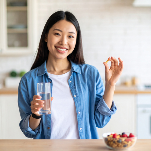 지용성 비타민 흡수를 위해 식사 직후 섭취가 이상적입니다.