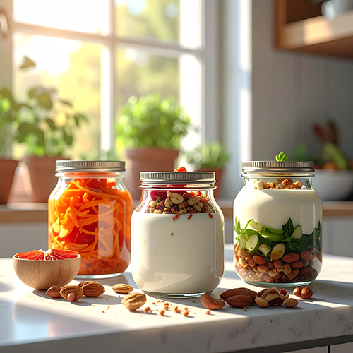 김치, 요거트, 된장 같은 발효식품은 장내 균형 회복에 도움이 될 수 있습니다. 다만 당분이 많은 가공 발효식품은 오히려 장에 부담이 될 수 있으니 라벨을 확인해 주세요.