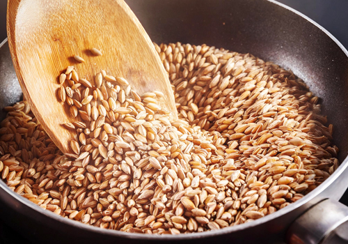 2. 씻은 보리는 중불에서 천천히 볶아주면 고소한 향이 배어 나옵니다.