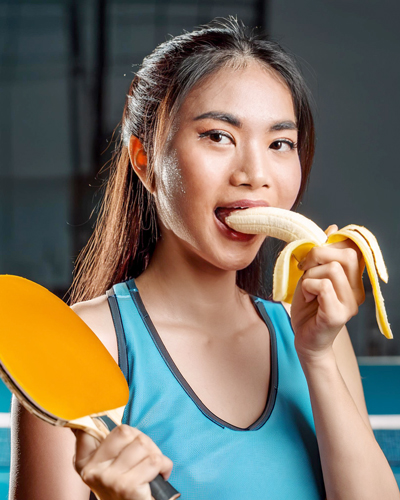 바나나는 식이섬유가 풍부하여 소화 기능을 개선하는 데 도움이 됩니다. 식이섬유는 장 내에서 수분을 흡수해 변의 부피를 늘리고, 배변 활동을 원활하게 하여 소화기 건강을 촉진합니다. 이는 운동 후 빠른 회복과 몸의 리듬을 유지하는 데 중요한 역할을 합니다.