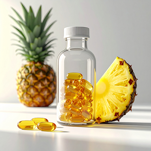 퀘르세틴의 단점은 체내 흡수율이 낮다는 점입니다. 브로멜라인은 장벽 투과를 돕는 역할을 해, 퀘르세틴이 몸속에 더 잘 흡수되도록 도와줄 수 있습니다. 이 때문에 두 성분을 함께 배합한 보충제가 많습니다.