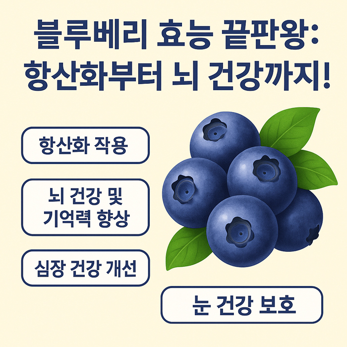 블루베리는 작지만 놀라운 효능을 가진 슈퍼푸드입니다. 꾸준히 하루 한 줌씩 섭취하면 항산화, 심혈관 건강, 뇌 기능, 눈 건강까지 두루 챙길 수 있습니다. 오늘부터 여러분의 건강 루틴에 블루베리를 추가해 보세요!