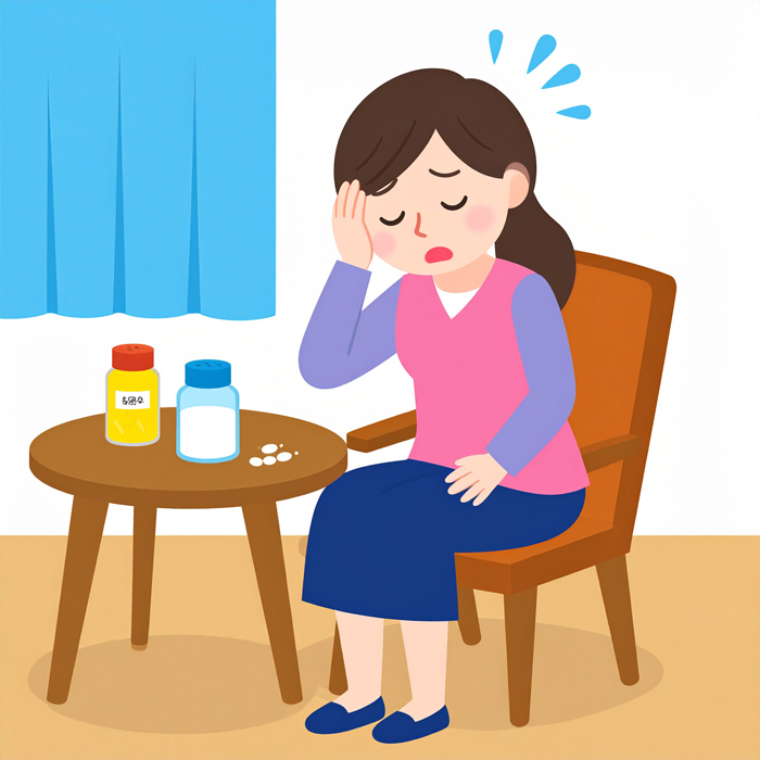- 어지럼증 — 특히 앉았다가 일어날 때 두통·현기증