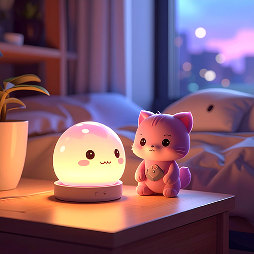 작은 사이즈라 침대 옆 협탁이나 책상 위에 올려두기에도 적당하며, 부드러운 실리콘 재질이라 야간 조명으로 사용해도 눈부심이 거의 없습니다. 전원을 켜면 자연스럽게 공간을 따뜻하게 밝혀주는 스타일이라, 무드등을 처음 사용해보는 분들도 부담 없이 선택할 수 있는 제품입니다.