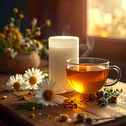 캐모마일은 부드러운 안정감을 주는 허브로, 특히 저녁 루틴에 “차 한 잔” 형태로 부담 없이 넣기 좋습니다. 스트레스로 속이 불편해지는 분들에게도 선호도가 높은 편이에요.