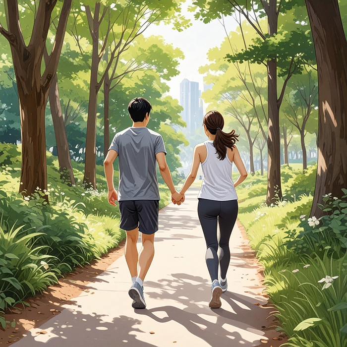 A. 빠른 걷기 30분이면 충분히 시작할 수 있습니다. 분할이 편하면 10분×3회로 나눠도 효과적입니다.
