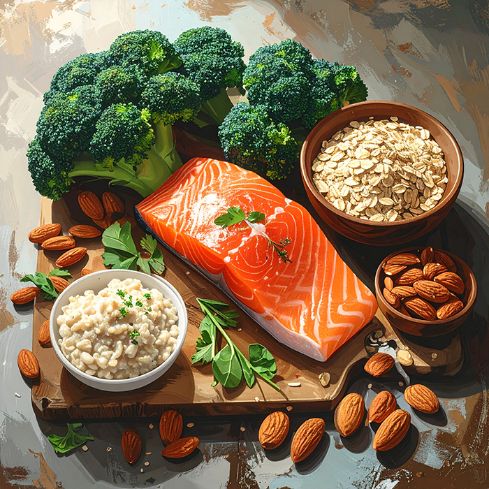 - 통곡물(귀리·현미·보리) — 베타글루칸 등으로 LDL 콜레스테롤과 혈당 변동을 완화.