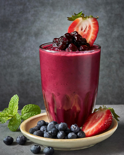 아사이 베리 스무디: 냉동 아사이 베리를 시금치나 케일, 바나나, 그리스 요거트 또는 식물성 단백질 파우더, 원하는 액체(예: 아몬드 밀크 또는 코코넛 워터)와 섞어 믹서기에 넣습니다. 부드럽고 크리미 한 질감이 될 때까지 블렌딩 하여 상쾌하고 영양이 풍부한 스무디를 만드세요.