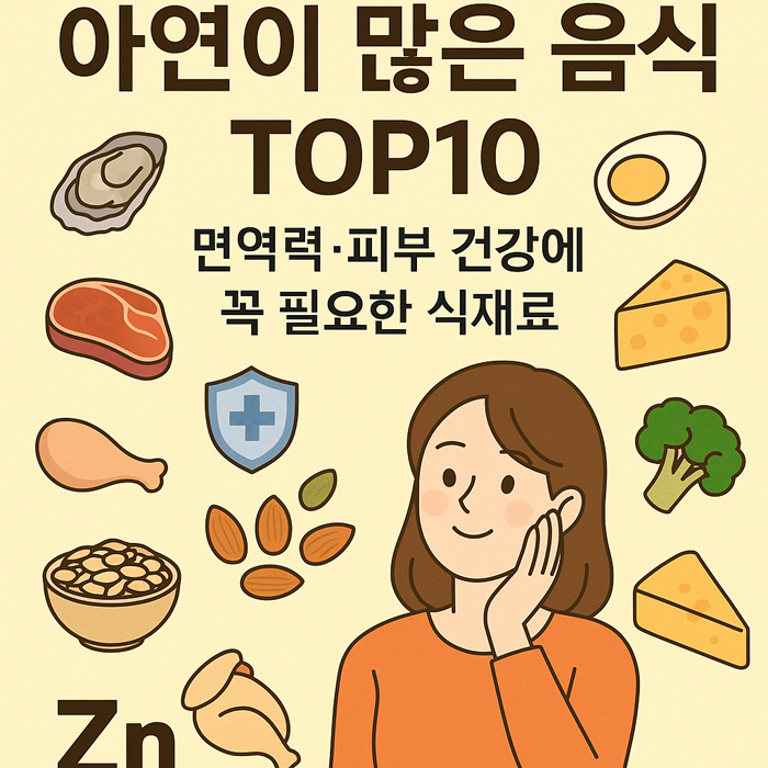 아연은 눈에 보이지 않지만 면역력과 피부 건강을 지키는 핵심 미네랄입니다. 굴, 육류, 견과류, 곡물 등 아연이 풍부한 식재료를 일상 식단에 넣는 것만으로도 건강을 지킬 수 있습니다. 특히 겨울철 면역력 저하나 잦은 감기, 피부 트러블이 걱정된다면 오늘부터 아연 식품을 의식적으로 챙겨보세요.