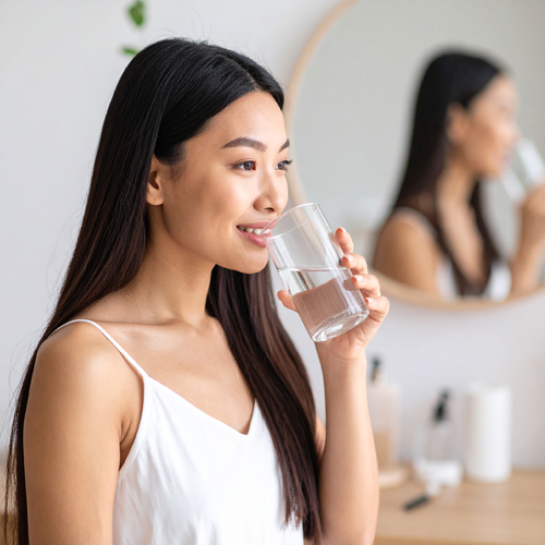 사람은 자는 동안 500~800ml의 수분을 잃습니다. 아침에 피곤하거나 입안이 텁텁하고, 배변이 원활하지 않은 이유는 이 **가벼운 탈수 상태** 때문일 수 있습니다.