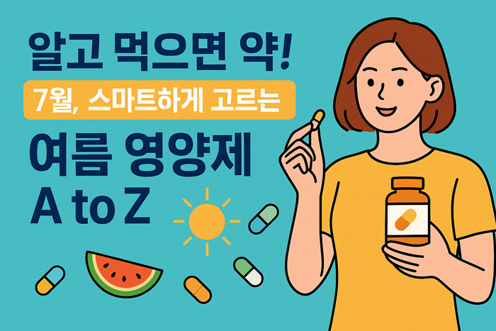 특히 7월은 탈수와 영양 손실이 겹치는 시기이므로, 똑똑한 영양제 선택이 필수입니다. 알고 먹는 영양제로 무더운 여름을 건강하게 이겨내 보세요!
