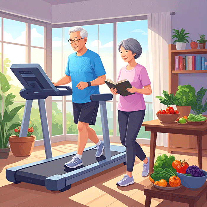 - 운동: 주 3~5회, 30~45분 유산소(빠르게 걷기/자전거) + 주 2회 근력. 뇌혈류·신경가소성↑, 염증·인슐린저항성↓.