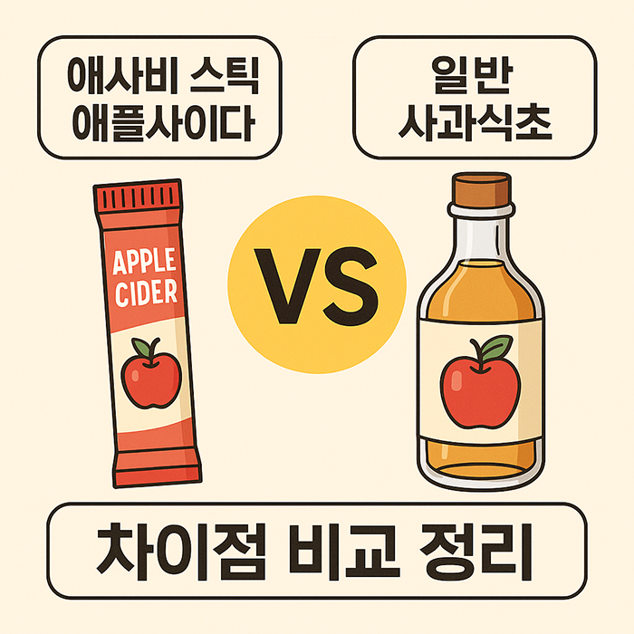 정리하면, 애사비 스틱 애플사이다는 사과식초를 베이스로 한 기능성 건강제품에 가깝고, 일반 사과식초는 전통 발효 식초 본연의 기능을 원하는 분께 적합한 제품입니다.
