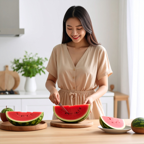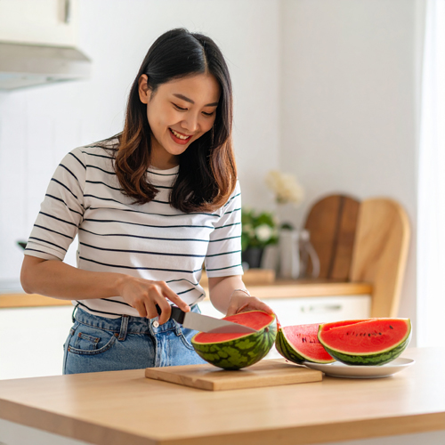 애플수박은 크기뿐만 아니라 비주얼도 뛰어납니다. 껍질의 줄무늬와 선홍빛 과육 덕분에 홈카페, 과일바, 선물용 과일 박스로도 활용됩니다.