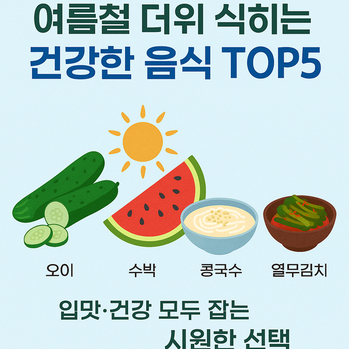 무더운 여름, 땀으로 수분과 영양소가 빠져나가기 쉬운 계절입니다. 이럴 때일수록 더위를 식혀주면서도 건강까지 챙길 수 있는 음식이 필요합니다. 이번 글에서는 여름철 입맛을 살리면서 몸속 열을 내리는 데 도움을 주는 건강한 음식 TOP5를 소개합니다.