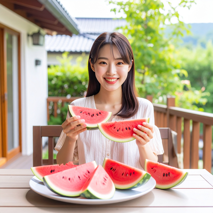 수박은 수분이 92% 이상으로 매우 높으며, 시트룰린 성분이 이뇨작용을 촉진해 몸의 노폐물과 열을 배출하는 데 탁월합니다. 또 항산화 작용을 하는 리코펜도 풍부해 여름철 피로 회복과 면역력 유지에 효과적입니다.