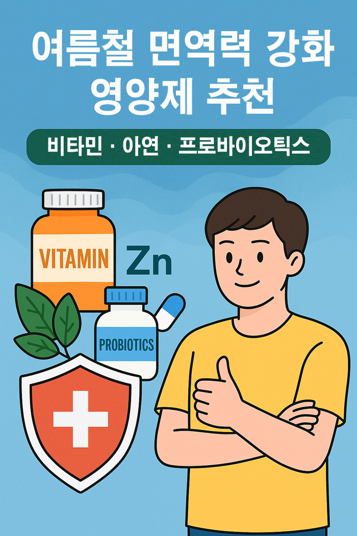 여름은 높은 기온과 습도로 체력 소모가 커지고 면역 방어력이 흔들리기 쉬운 계절입니다. 땀과 함께 전해질·수용성 비타민이 손실되고, 냉방기 사용 및 차가운 음식 섭취로 장 점막이 약해질 수 있습니다. 이 글에서는 과학적 근거를 바탕으로 비타민 C·D, 아연, 프로바이오틱스를 중심으로 여름철 면역력을 체계적으로 끌어올리는 방법을 정리합니다.