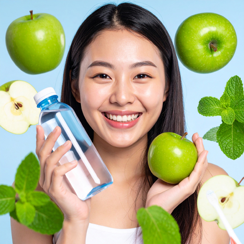 도움 되는 식품: 사과(기계적 세척 효과), 녹차(카테킨의 항균 작용), 파슬리(엽록소가 냄새 중화), 요거트(유익균이 장내 균형 개선→간접적 구취 완화)