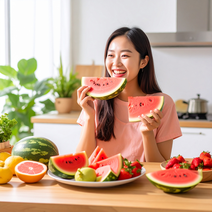 3. 수분 많은 식품 섭취: 수박, 오이, 토마토 등 수분 함량 높은 식품을 자주 섭취하세요.